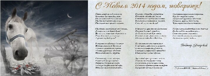Уважаемый Валерий Брониславович, Уважаемая Марина Виссарионовна, Президиум АОАН, Уважаемые коллеги- академики АОАН. Поздравляю с Новым 2014-м годом и Рождеством! Здоровья и счастья Вам в новом году - Деревянной Лошади. Пусть скачет она только вперед и приносит всем Вам только все хорошее ...