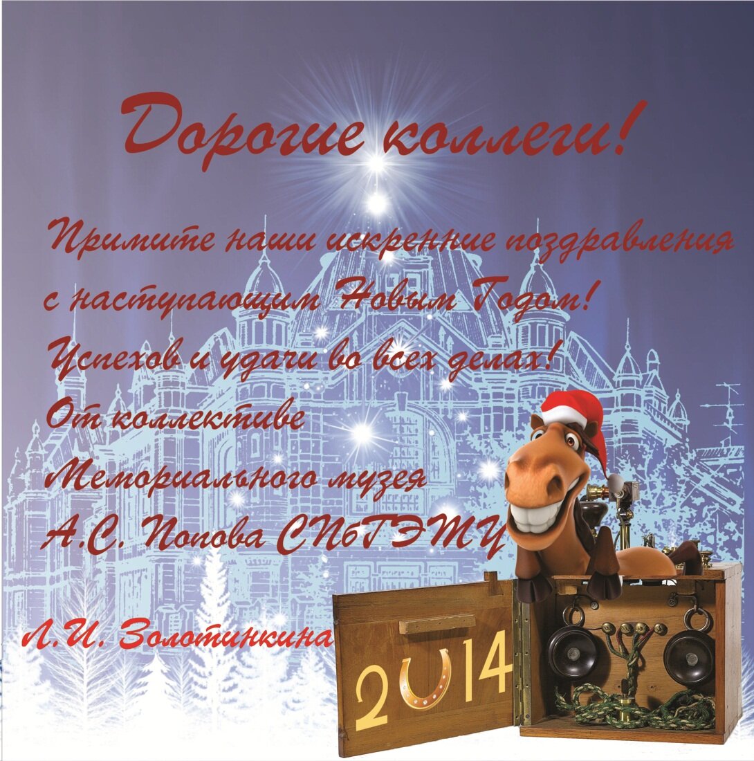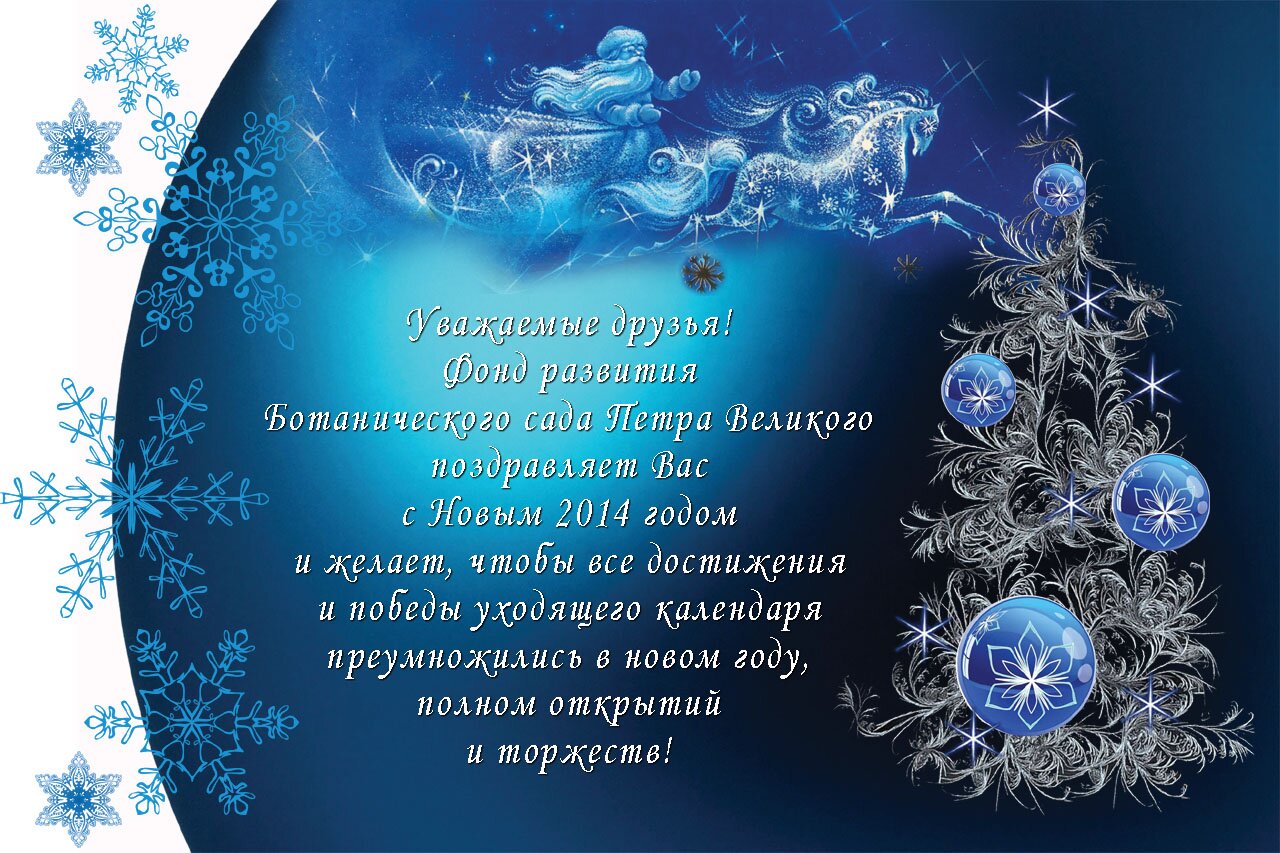 Пусть здоровье и удача благоволят Вам в достижении желаемых результатов. Пусть радует приятными вестями, встречами и событиями 2014 год, а счастье и процветание станут синонимами приходящего нового!